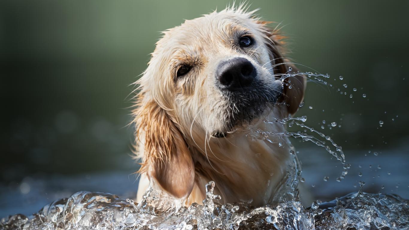 Wallpaper Golden retriever bathes in the water