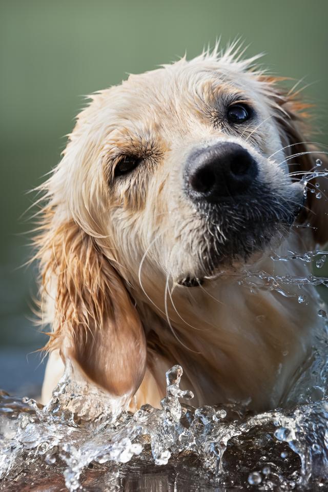 Wallpaper Golden retriever bathes in the water