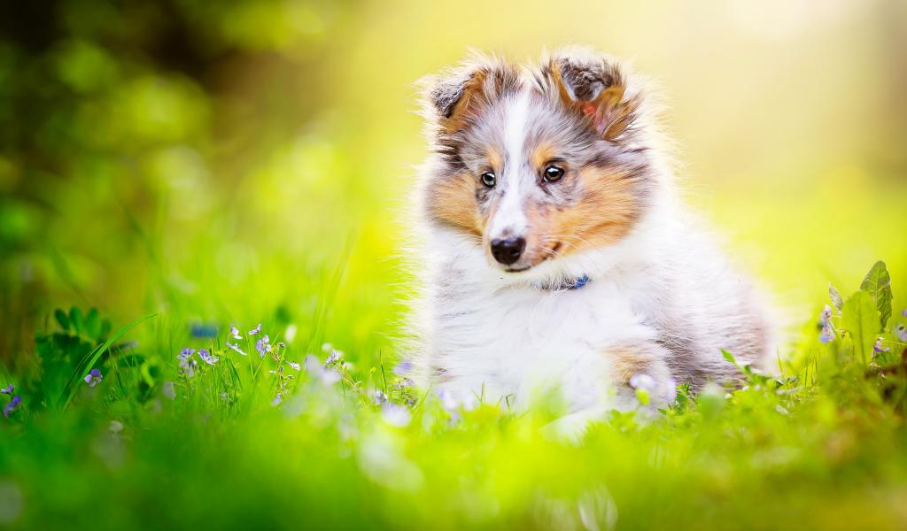 Wallpaper Little sheltie puppy sitting in the grass