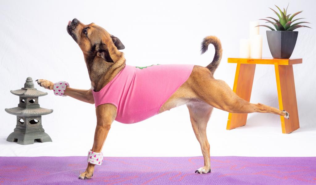 Wallpaper Dog in a suit is engaged in fitness.