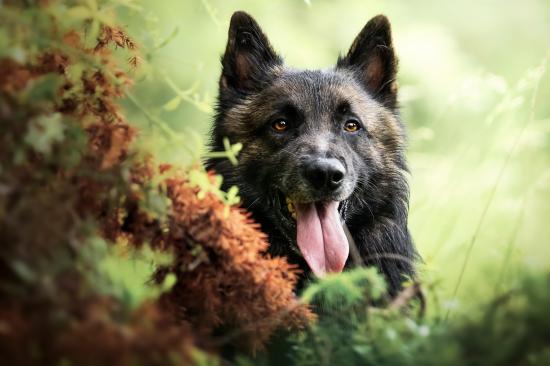 Wallpaper German shepherd with tongue hanging out in the grass