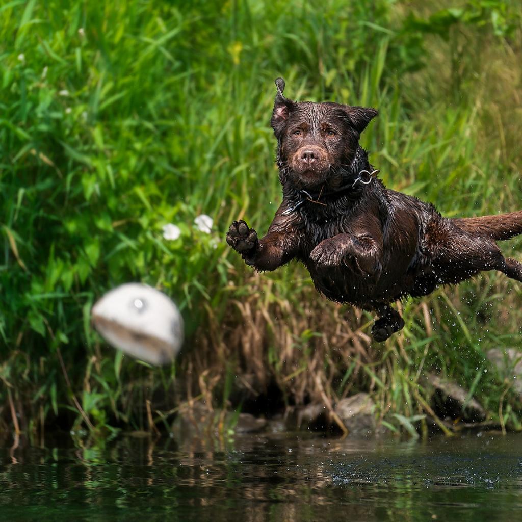 Wallpaper Wet Labrador Jumps Into The Water For A Ball