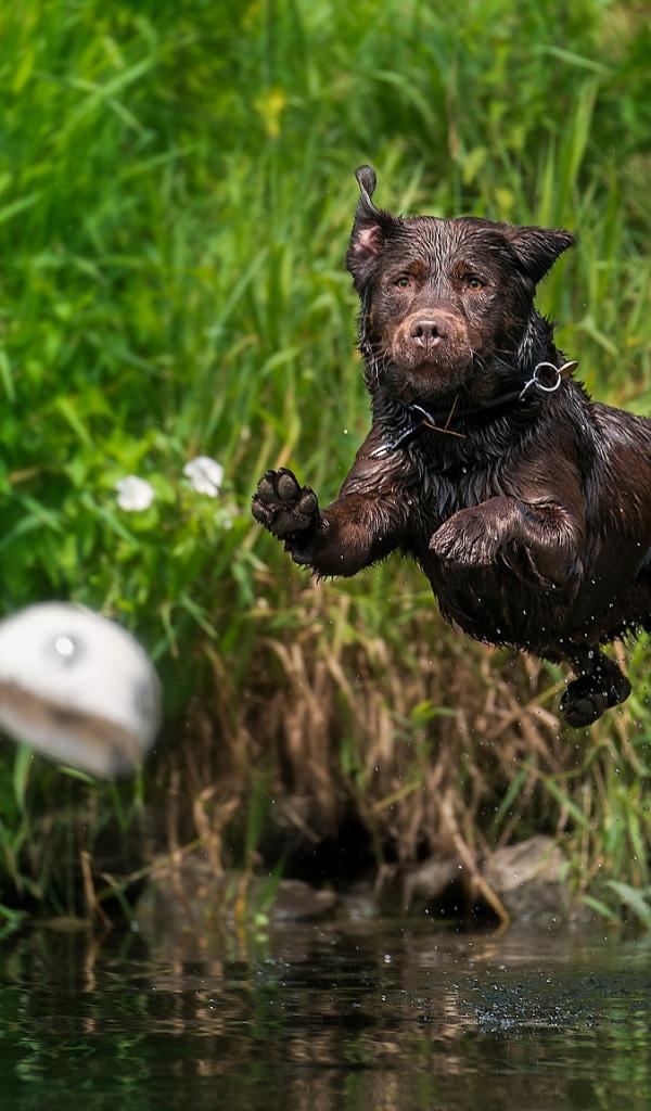Wallpaper Wet Labrador Jumps Into The Water For A Ball