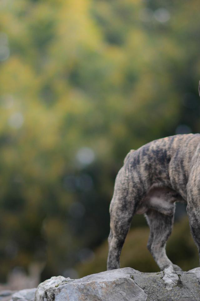 » Wallpaper French Bulldog stands on a stone