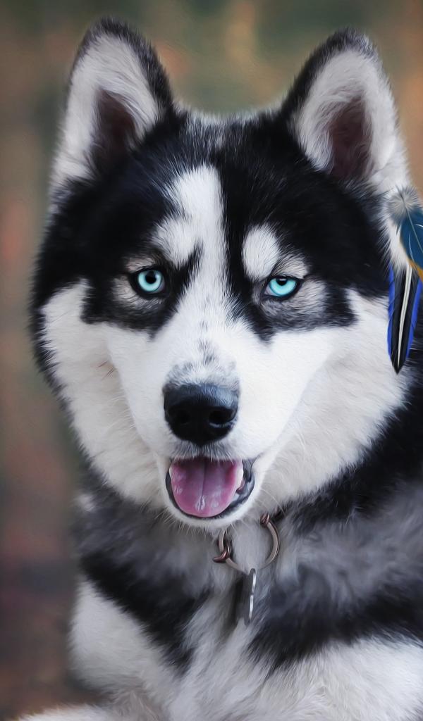 Wallpaper Blue-eyed husky with protruding tongue