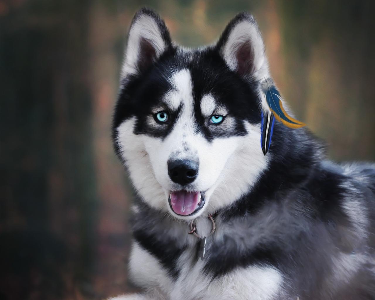 Wallpaper Blue-eyed husky with protruding tongue