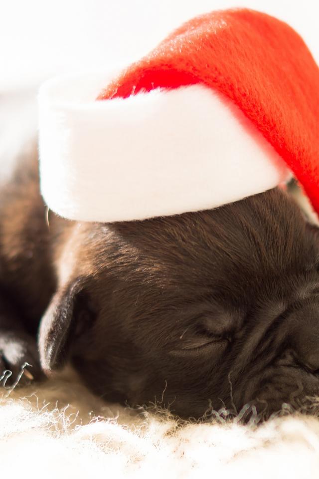 Wallpaper Little newborn puppy in a santa hat