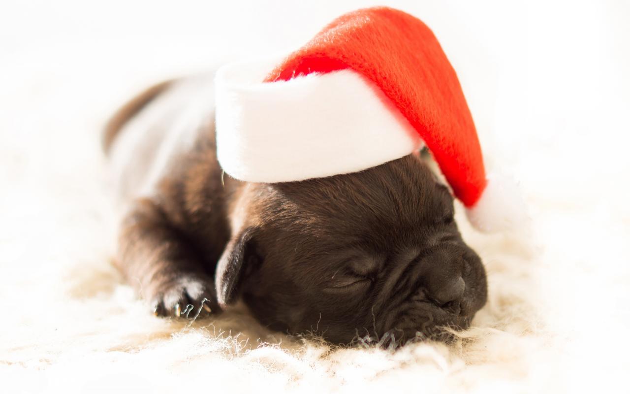 Wallpaper Little newborn puppy in a santa hat