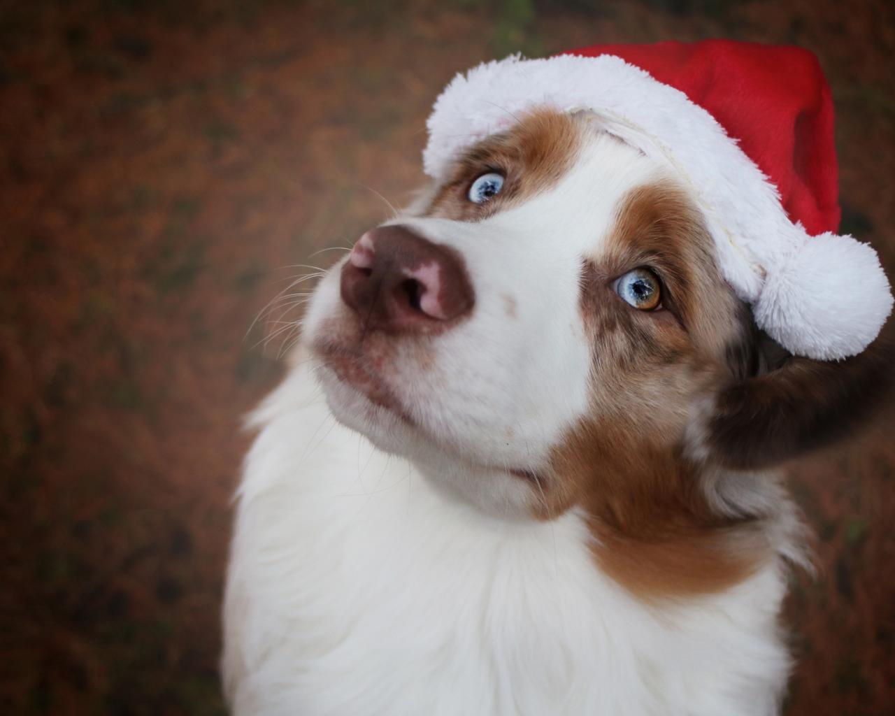 Wallpaper Blue-eyed Australian Shepherd in santa hat