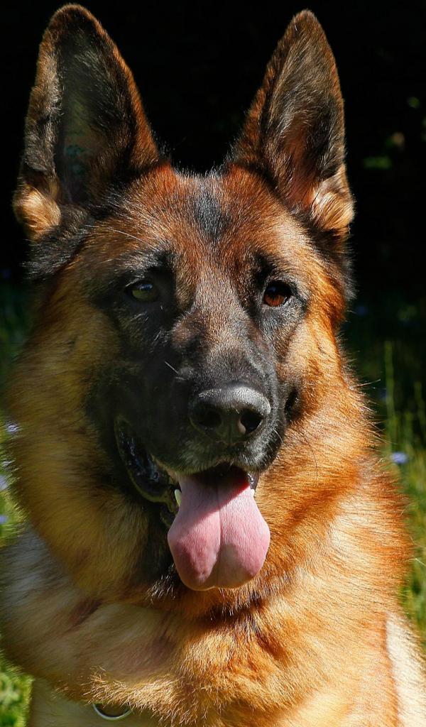 Wallpaper German shepherd dog with tongue hanging out on green grass