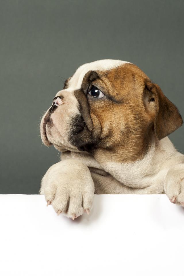 Wallpaper A little English bulldog puppy with his tongue hanging out