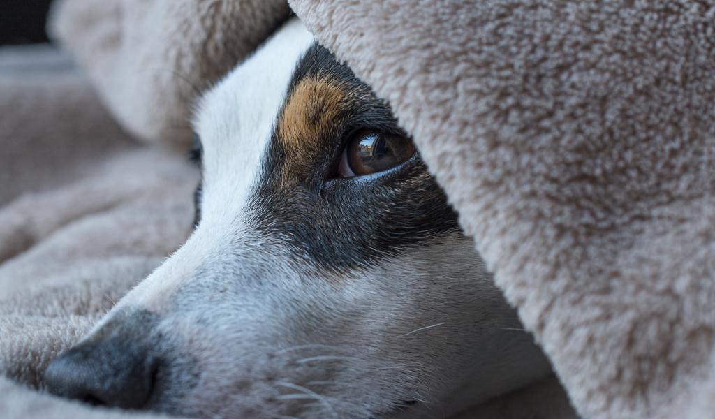 Wallpaper Sad dog lies under the covers