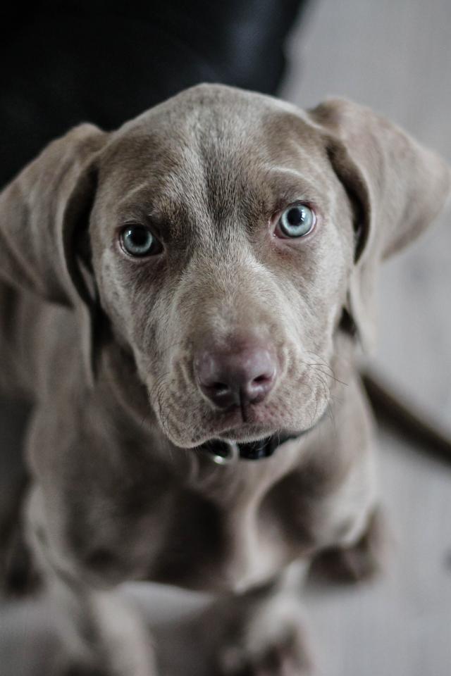 Wallpaper A small blue-eyed puppy of the Weimaraner breed