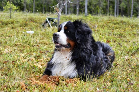 Wallpaper Bernese Mountain Dog resting on green grass