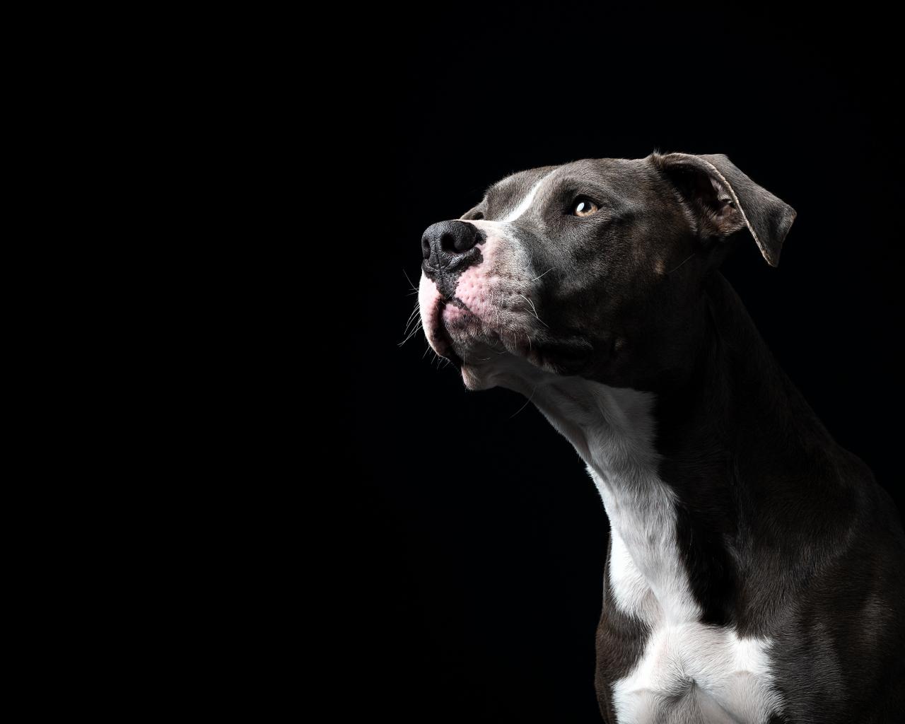 Wallpaper Bull terrier looks into the distance on a black background