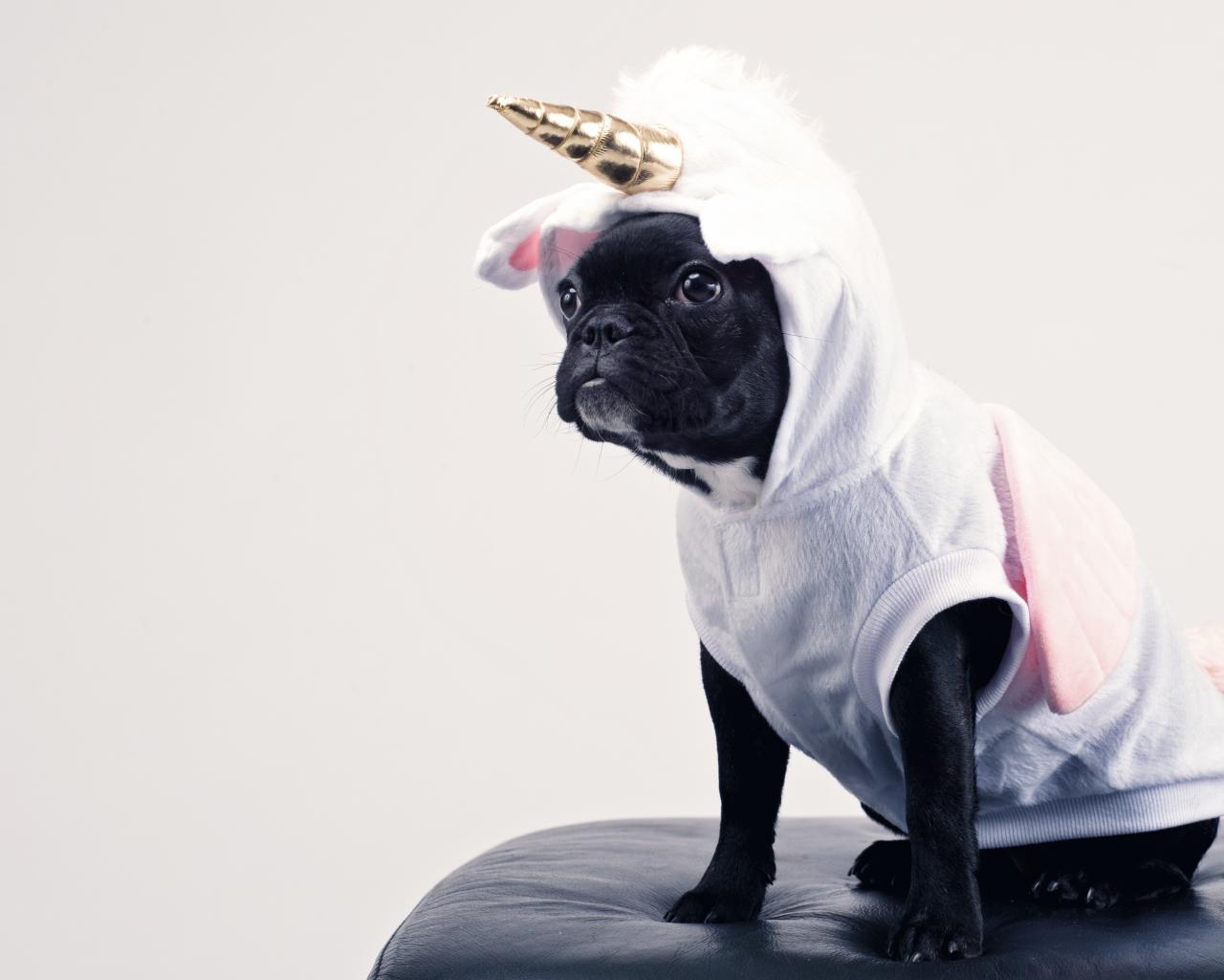 Wallpaper A puppy of a French bulldog in beads and a hat
