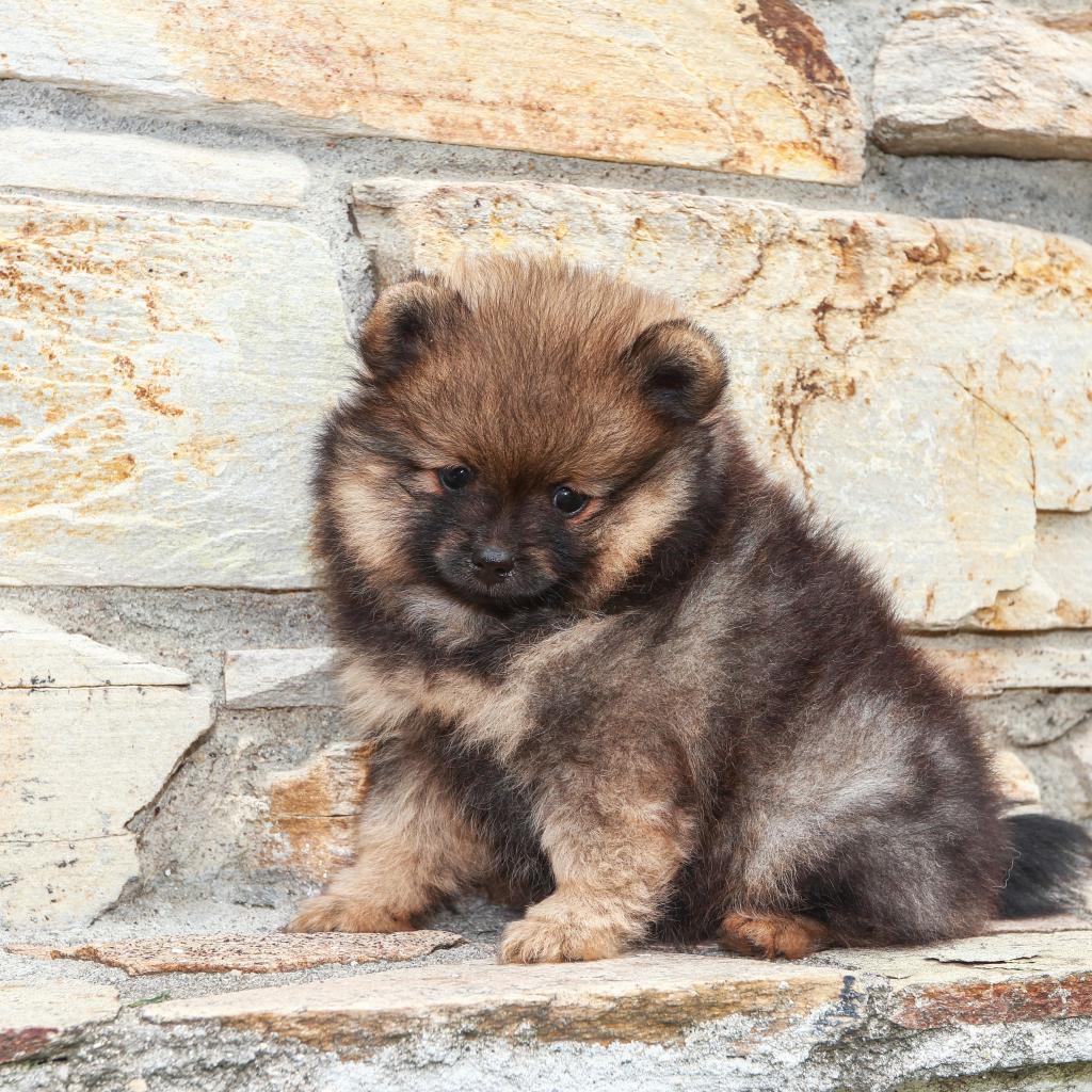 Wallpaper Little sad Pomeranian puppy near the wall