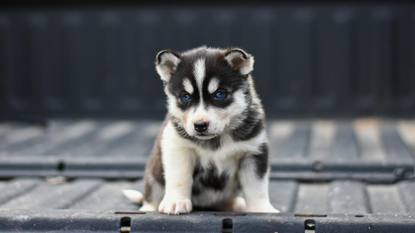 Wallpaper Little sad blue-eyed husky puppy