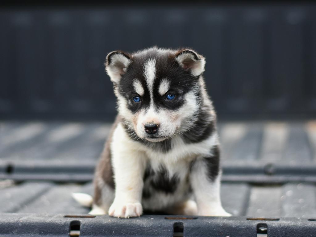 Wallpaper Little sad blue-eyed husky puppy