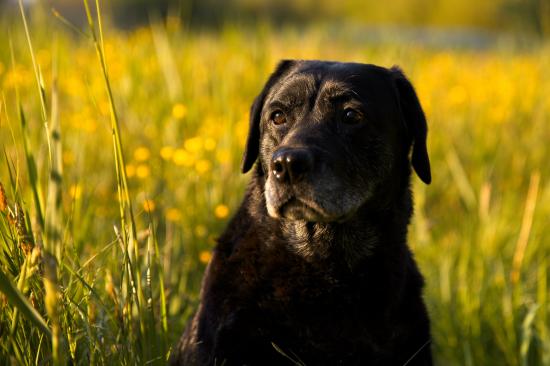 Wallpaper Big black labrador sitting in green grass
