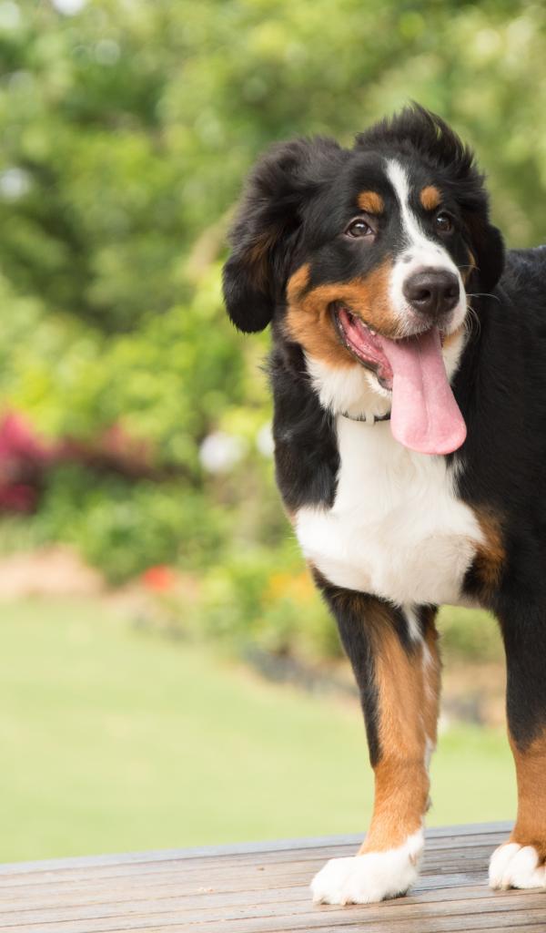 Wallpaper Bernese Mountain Dog puppy with protruding tongue
