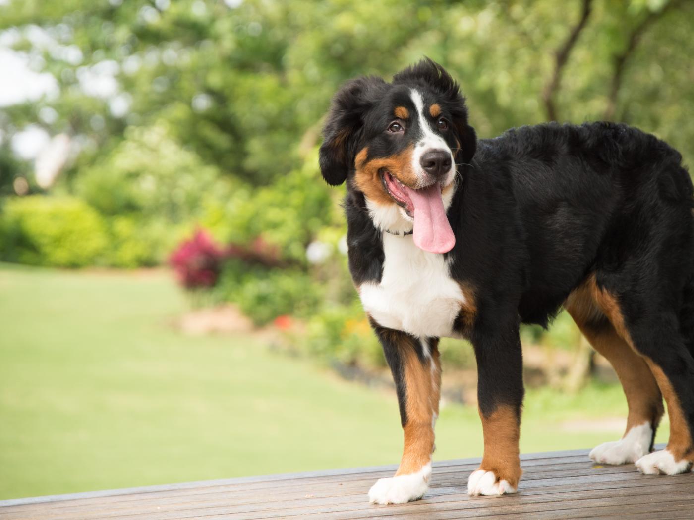 Wallpaper Bernese Mountain Dog puppy with protruding tongue