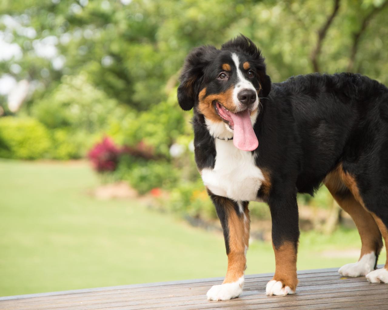 Wallpaper Bernese Mountain Dog puppy with protruding tongue