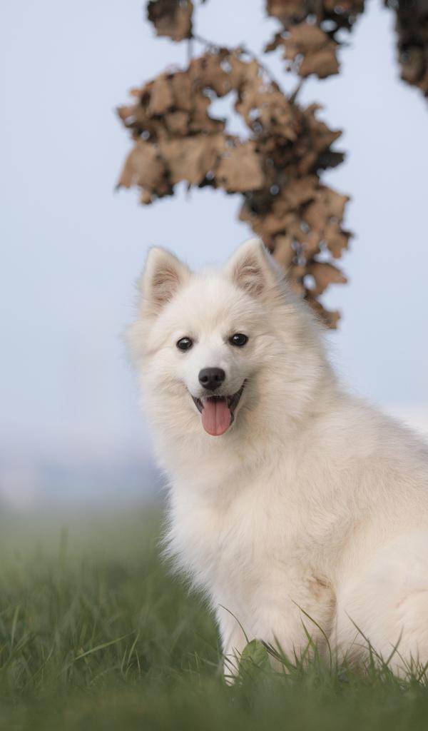 Wallpaper White dog Japanese Spitz breed sits on the grass