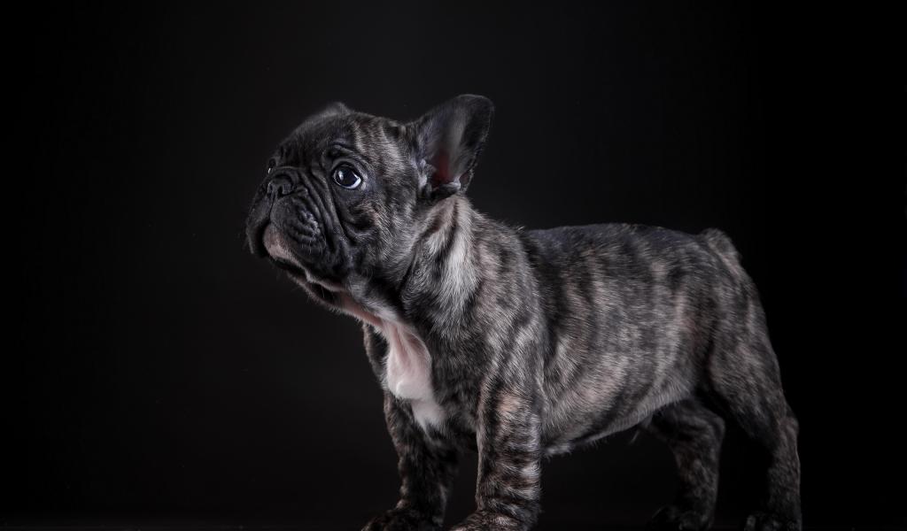 Wallpaper Small french bulldog puppy on black background