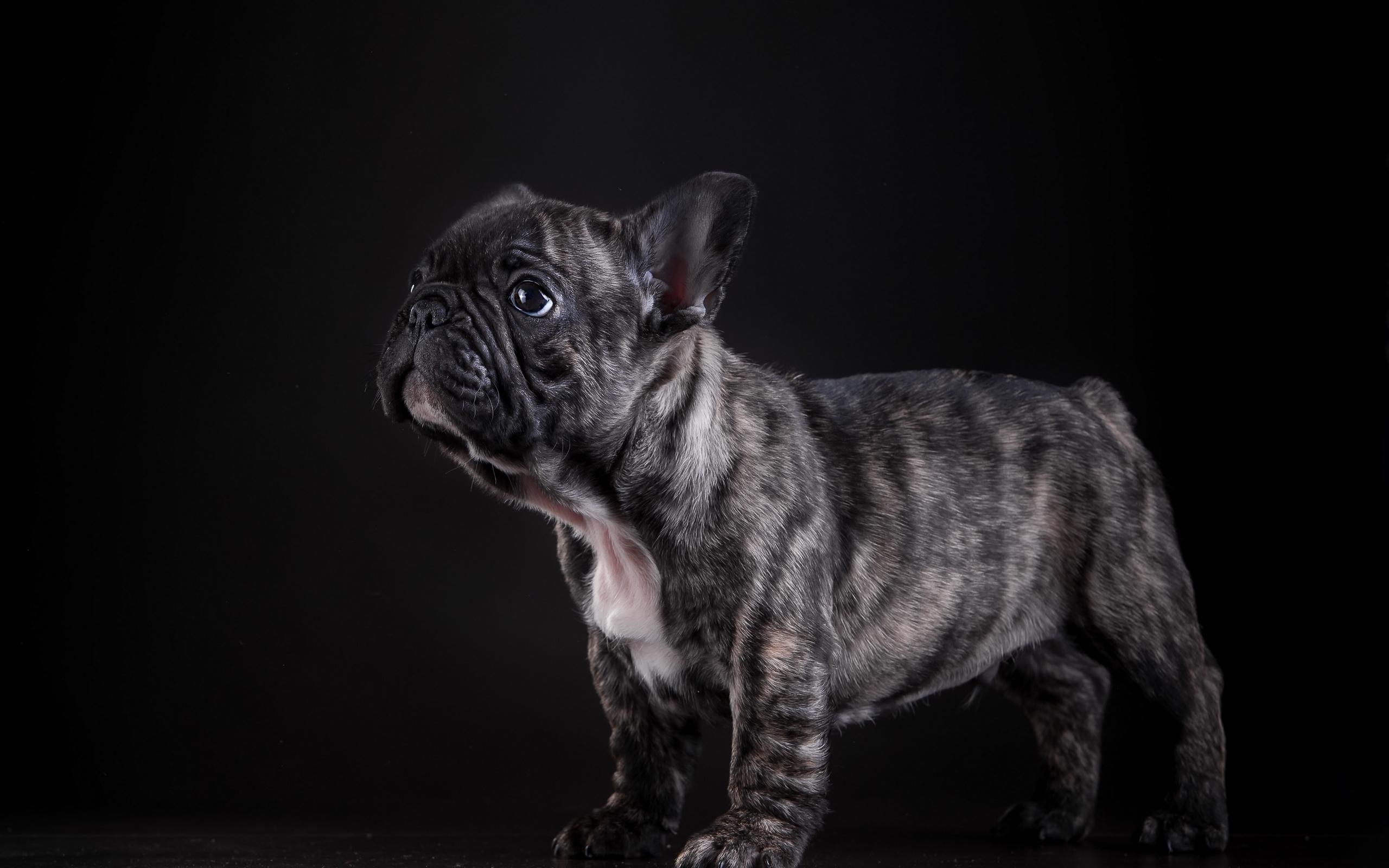 Wallpaper Small french bulldog puppy on black background
