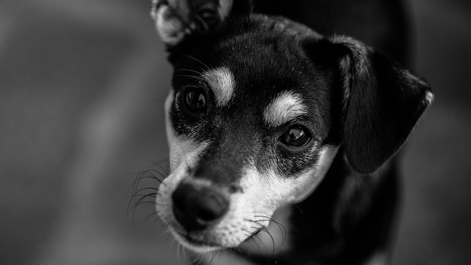 Wallpaper Sad look dog black and white photo