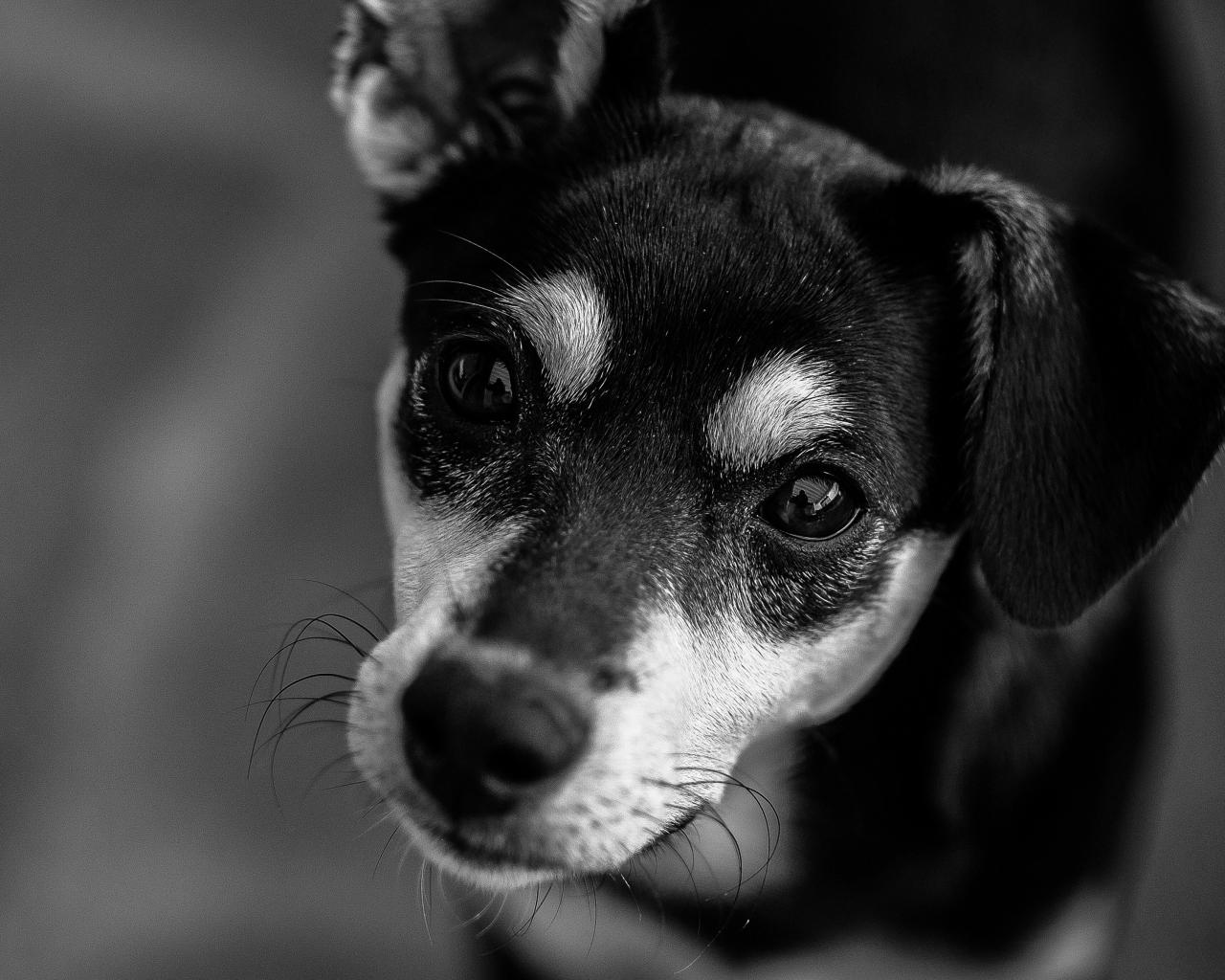 Wallpaper Sad look dog black and white photo