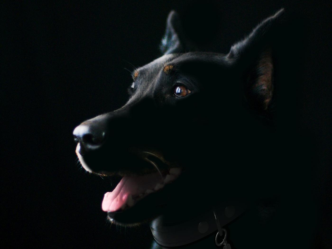 Wallpaper Purebred dog with protruding tongue on a black background