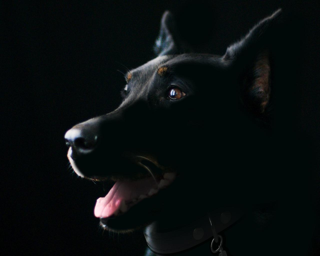 Wallpaper Purebred dog with protruding tongue on a black background