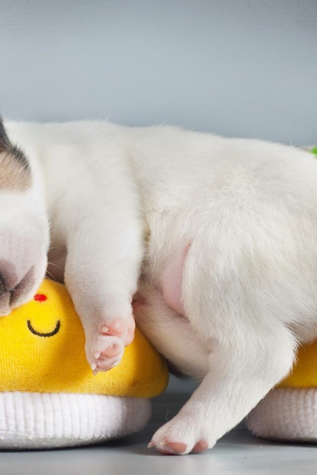 Wallpaper Puppy sleeping on baby booties