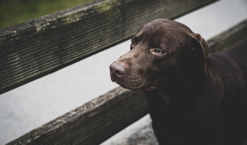 Wallpaper Sad black labrador at the wooden fence