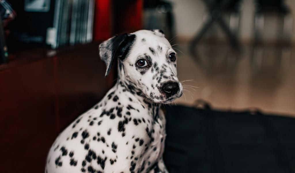 Wallpaper Beautiful spotted dalmatian in green leaves
