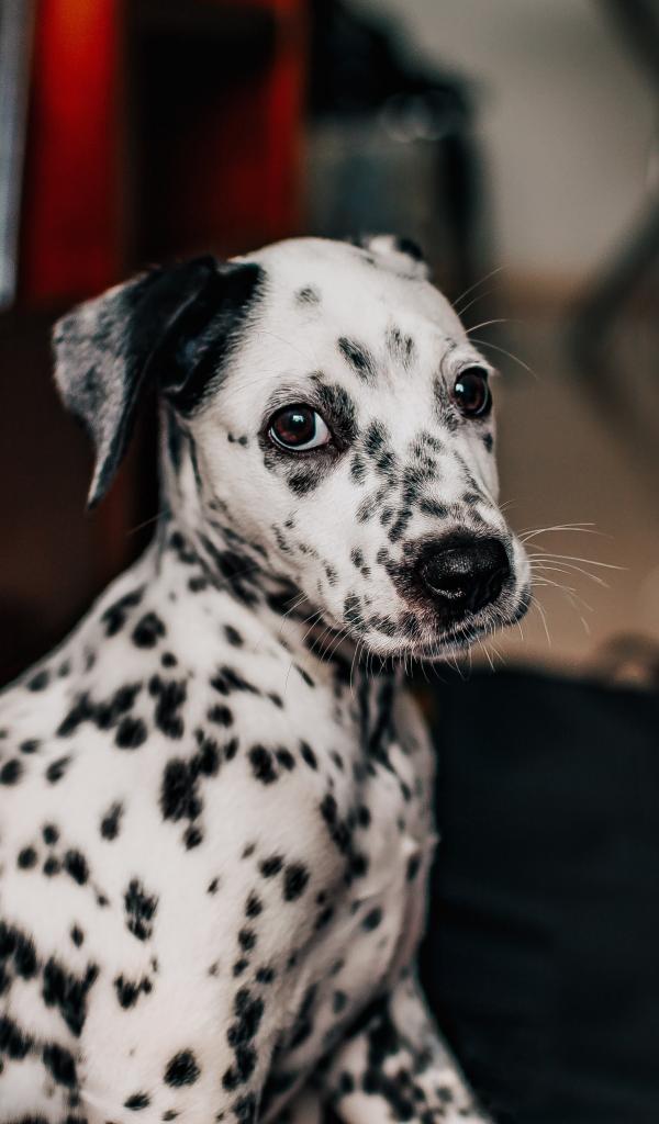 Wallpaper Beautiful spotted dalmatian in green leaves