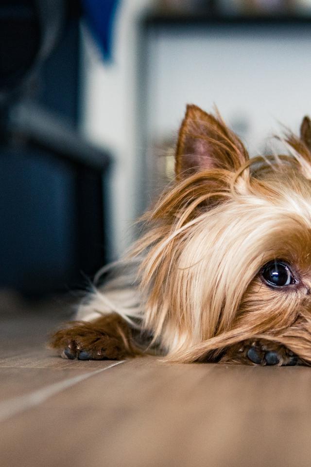 » Wallpaper Sad yorkshire terrier on the floor