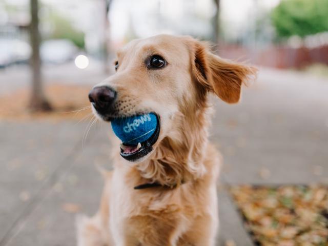 Wallpaper Golden Retriever with a ball in its mouth