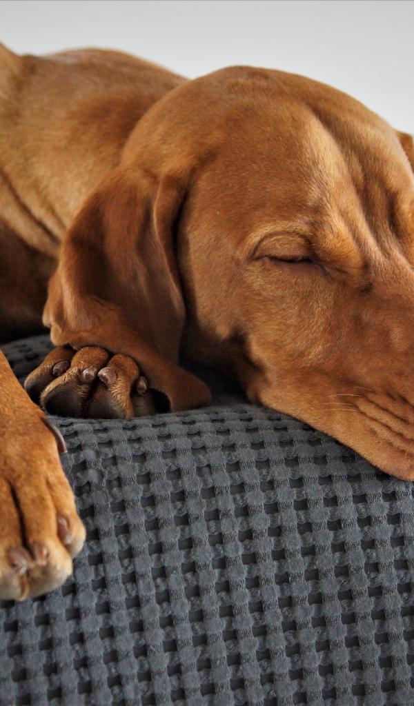 Wallpaper Brown dog sleeping on the bed