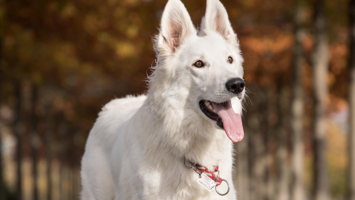 Wallpaper White shepherd dog with protruding tongue
