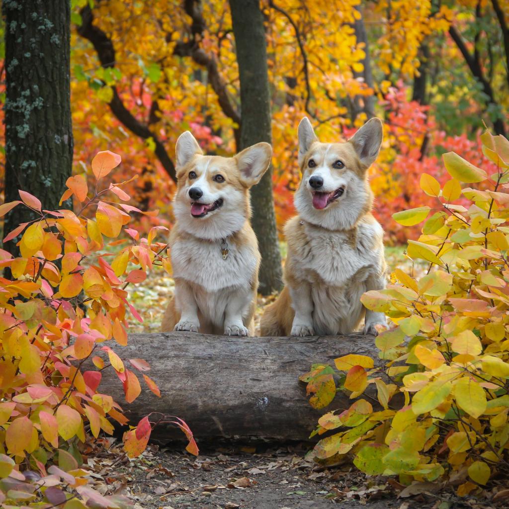 Wallpaper Two welsh corgi dogs in the autumn park