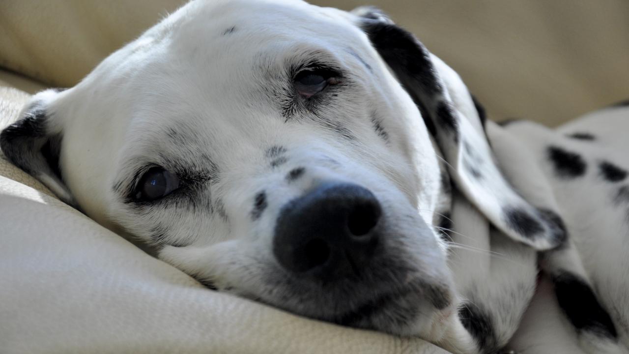 Wallpaper Spotted Dalmatian sleeping on the bed