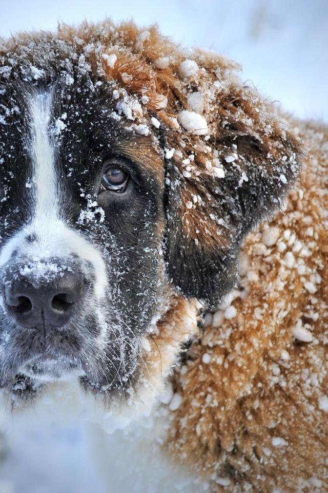 Wallpaper Large thoroughbred St. Bernard in the snow