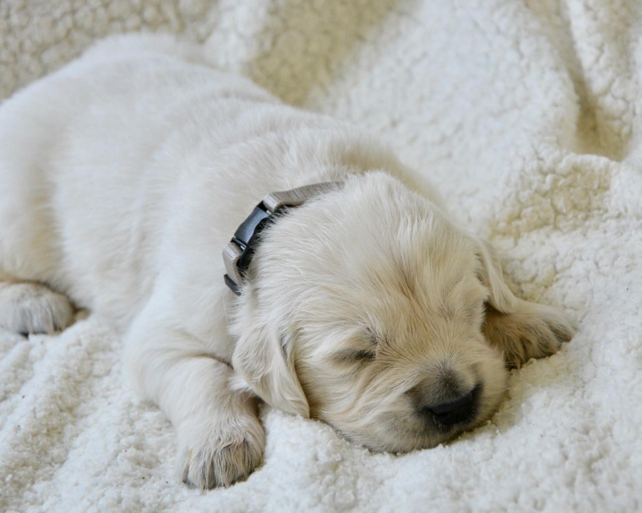 Wallpaper Satisfied sleeping puppy of a golden retriever