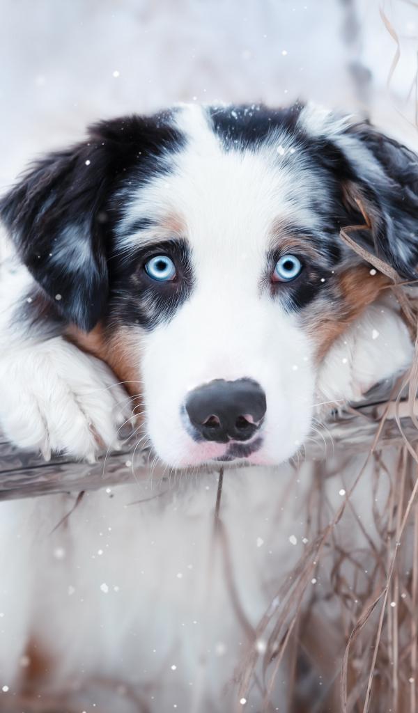 Wallpaper Australian Shepherd with blue eyes at the fence