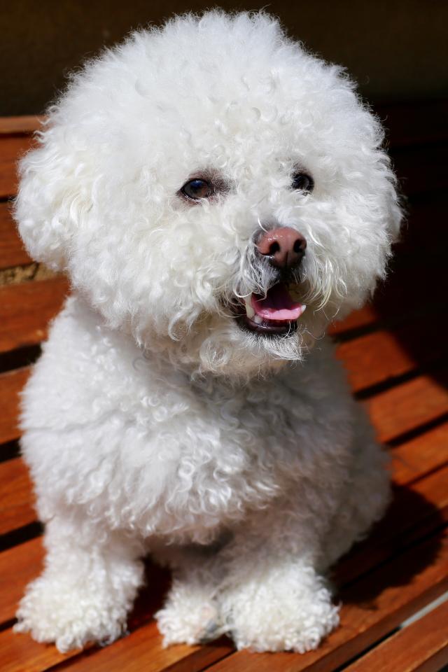 Wallpaper Fluffy white poodle puppy sitting on a bench