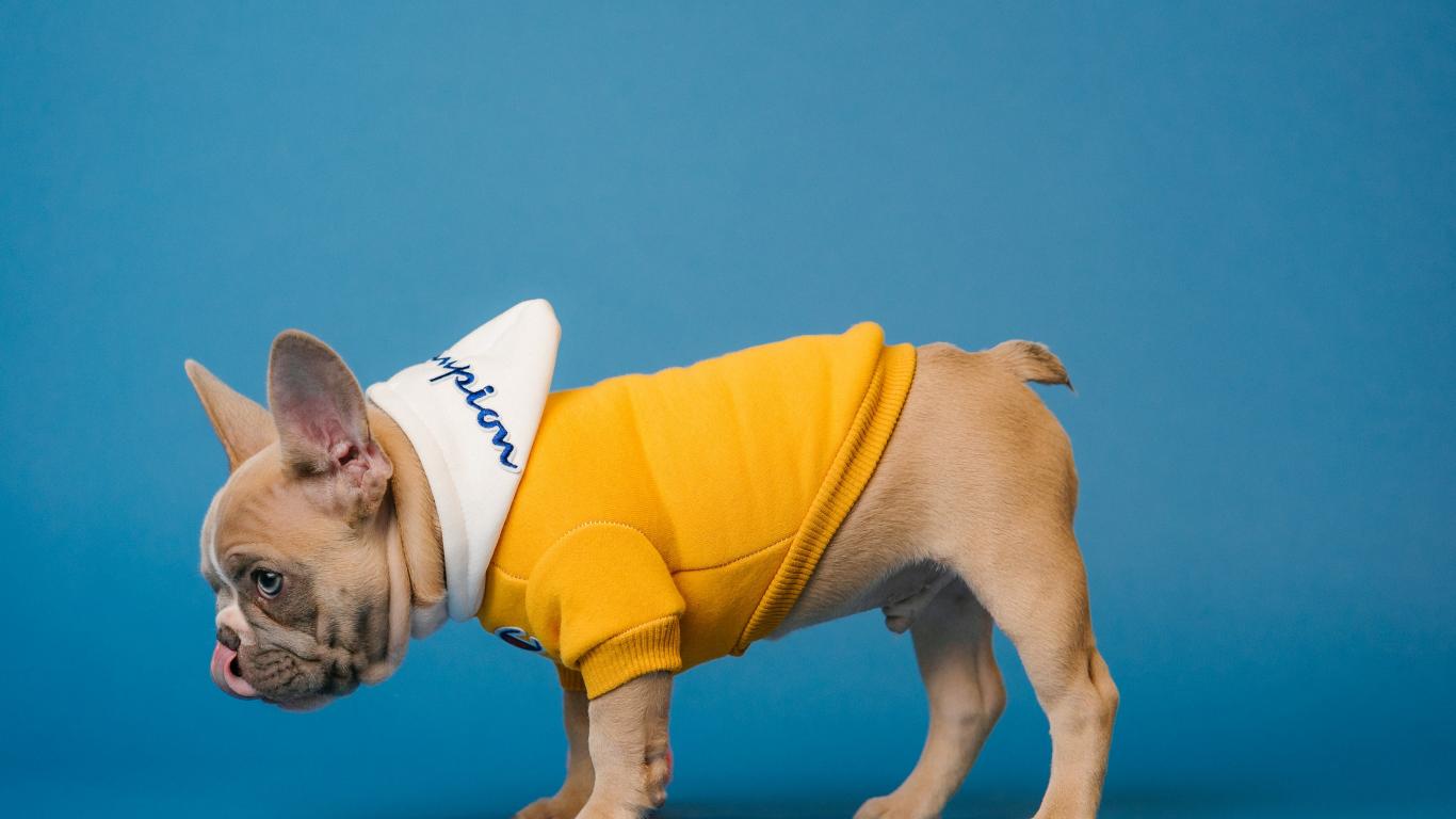Wallpaper French Bulldog in suit on blue background