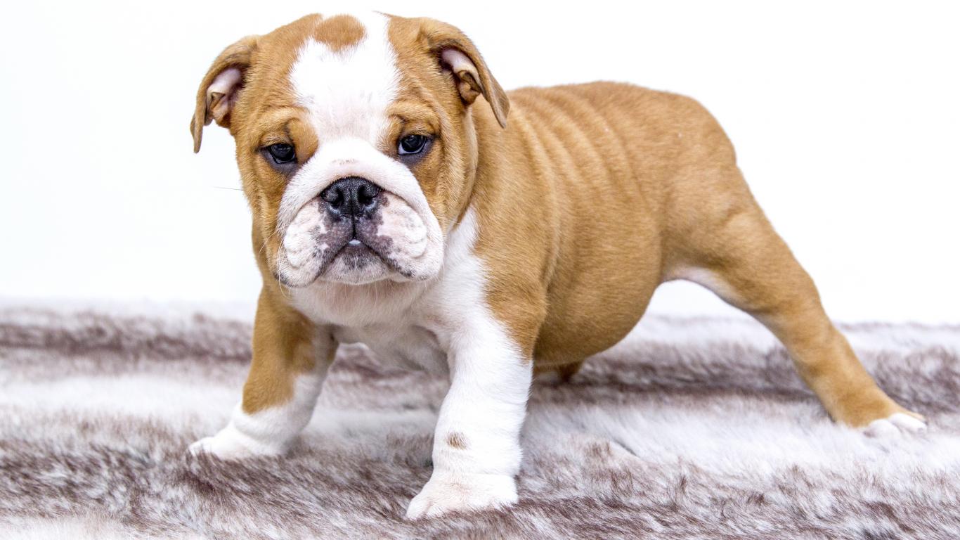 Wallpaper English Bulldog puppy on a litter